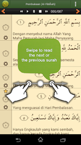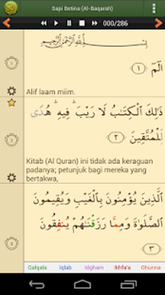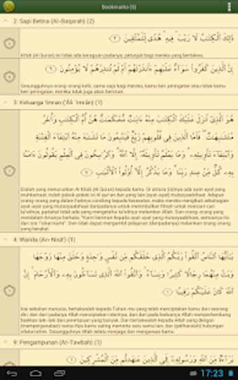 Aplikasi Al'Quran Bahasa Indonesia menyediakan terjemahan Alquran bahasa Indonesia. Ada berbagai fitur yang ditawarkan, seperti: